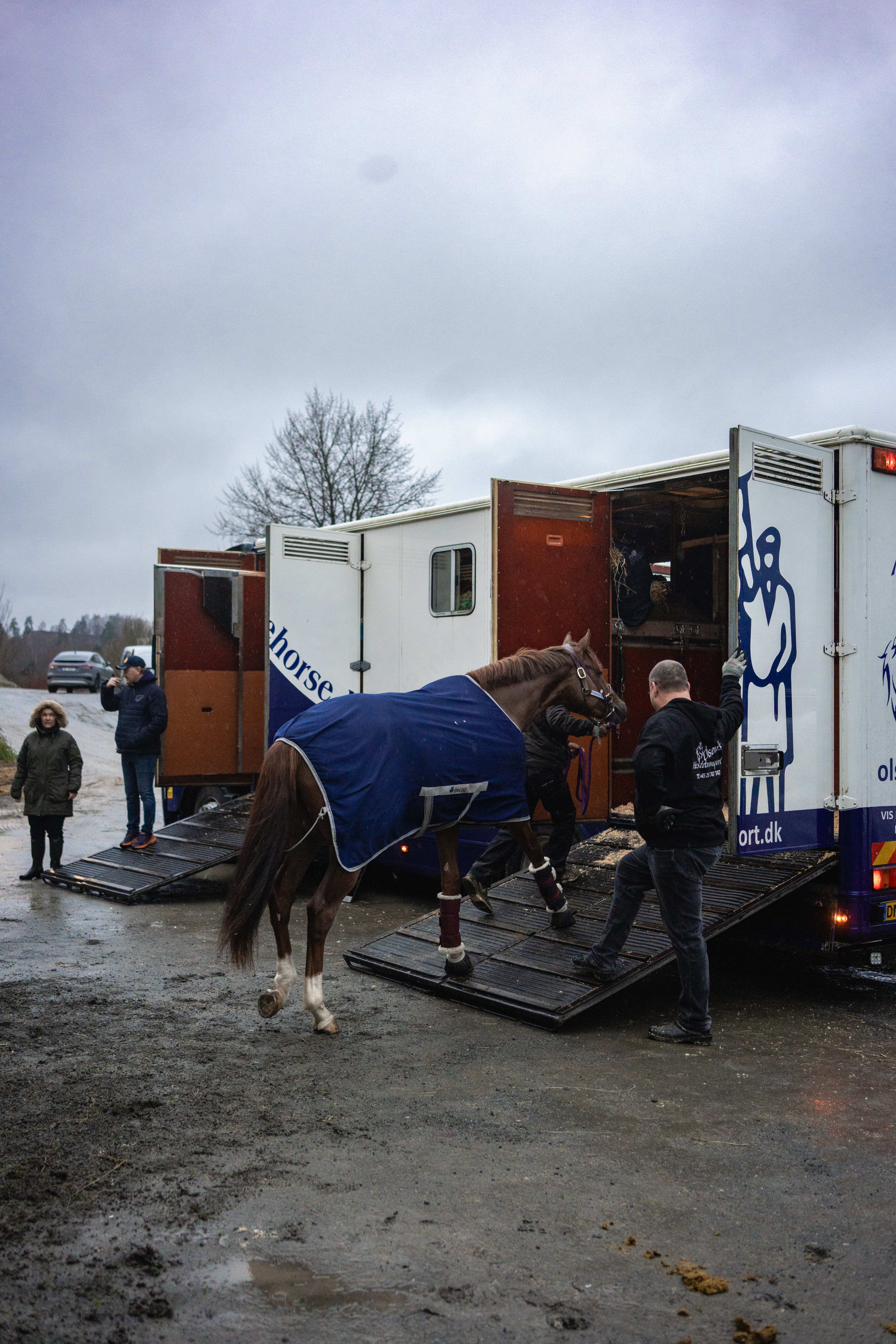 Onsdag reiste transporten med ni hester fra Øvrevoll. Med på laget blir ytterligere to nye engelske innkjøp.
