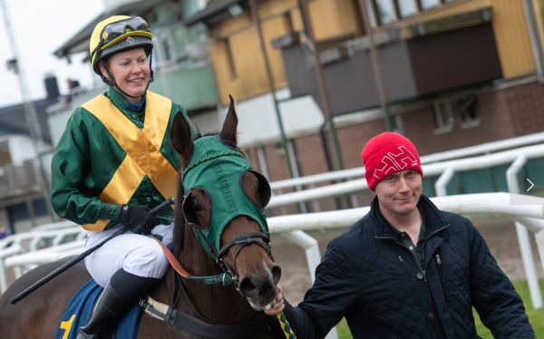 Fra Skara, det er 33 mil fra Øvrevoll, kommer Nathalie Mortensen og Indra Frid Ålrud (Svensk Galopps bilde over med "Silverstöveln" fra Strömsholm i juni) sammen med formsterke 1 Want Want (V65-3/V4-1).
