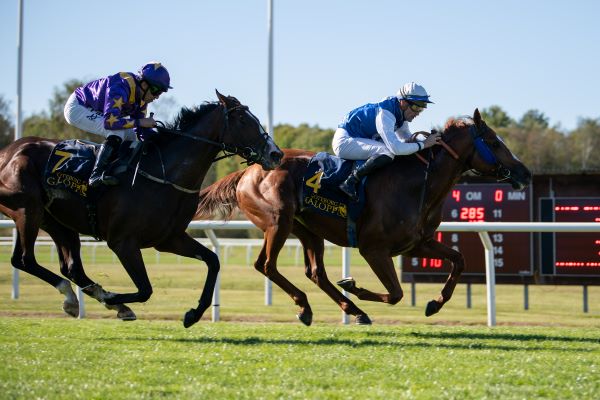 Dette bekrefter trener Jan-Erik Neuroth overfor ovrevoll.no søndag formiddag: - Det er skrevet under en kontrakt. Stall Perlen har så mange hester at de ønsket en egen førstejockey som var tilgjengelig hele sesongen. Det er uheldig for stallen å miste en førstejockey i oktober fordi han prioriterer i utlandet. Oliver er en god jockey, han har erfaringen og flere championater i karrieren. Han vant St Leger i Sverige på Zakopane (Svensk Galopps bilde over, red. anm.), og han red Ami De Vega i Gruppe 1-løpet Grosser Preis von Bayern i november. Jeg kommer til å bruke Oliver på mine andre hester også, det sier seg selv. Han blir boende i Danmark, men kommer til å ri en del av hestene på banen – også når det ikke er løp. Det er kort vei fra Danmark. Jeg har for øvrig også kontakt med frilansjockeyer i Tyskland som kan være aktuelle for store dager, sier Jan-Erik.