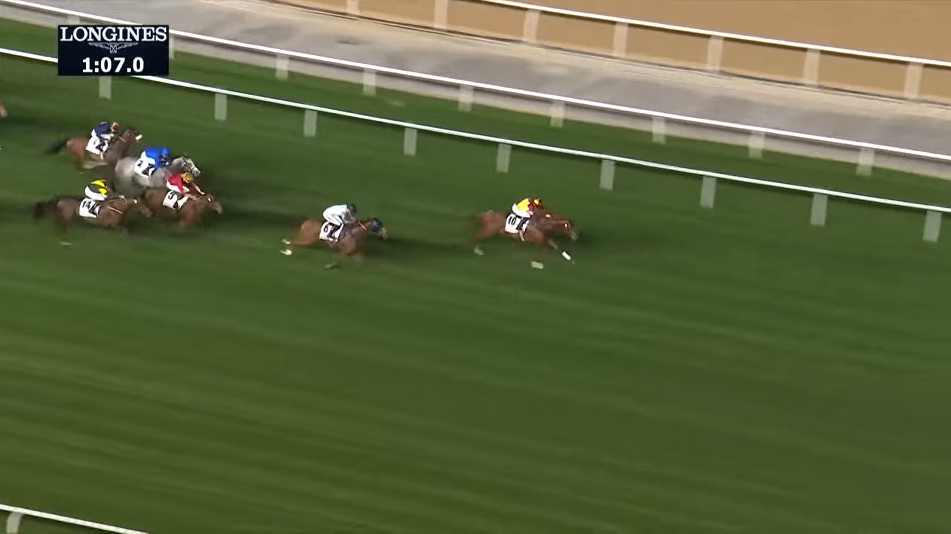 * Og det ble mer dansk glede fredag. Tidligere på dagen vant nemlig Taifuu sammen med Oliver Wilson (bildet fra emiratesracing.com/Race Photo over). Treåringen, som er oppdrettet av Stutteri Hjortebo, fikk også med seg rundt 800.000 kroner for seieren. Taifuu er eid av Jakobsen og Rasmussen I/S.